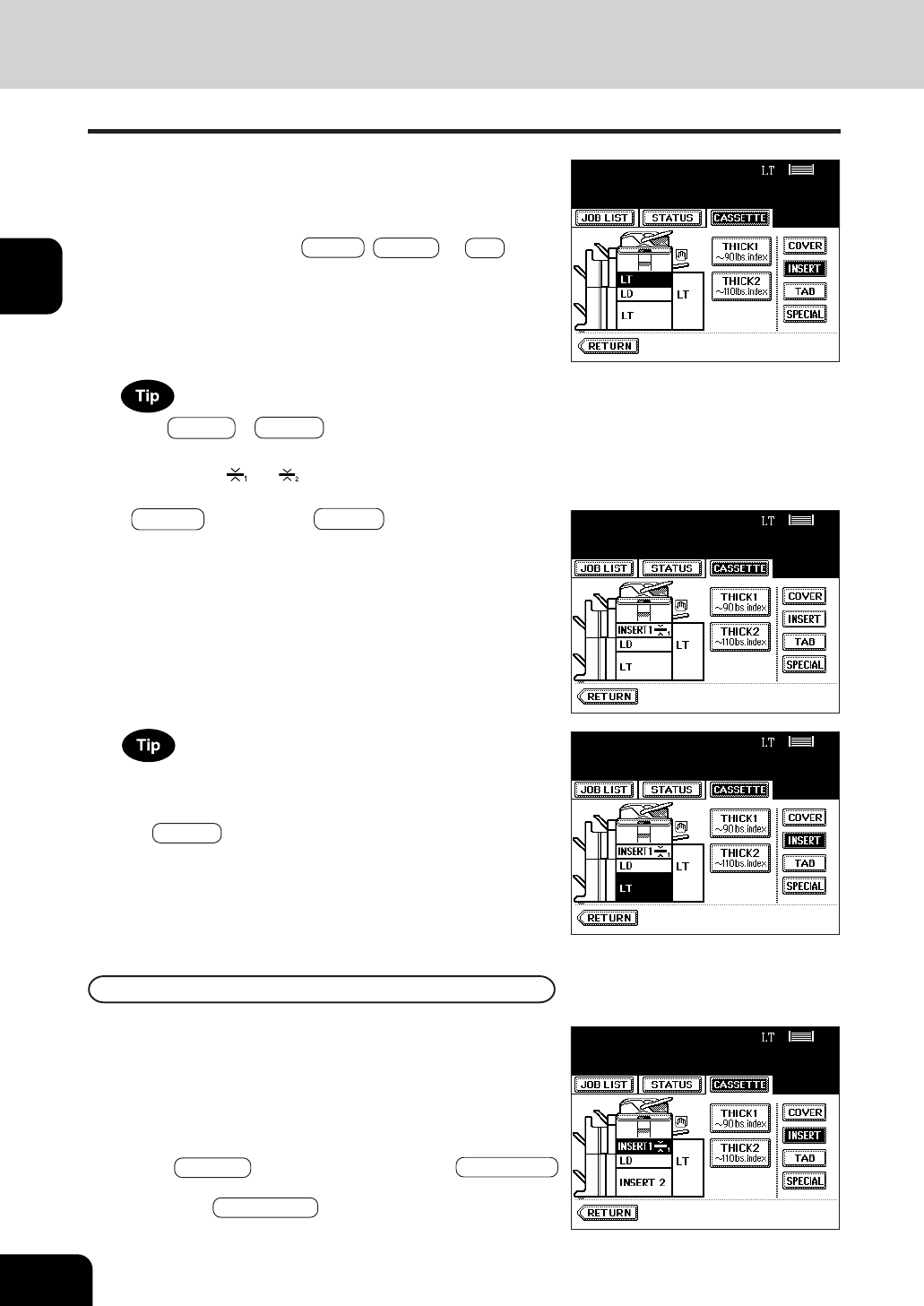 - Press the RETURN key on the touch panel or the JOB STATUS