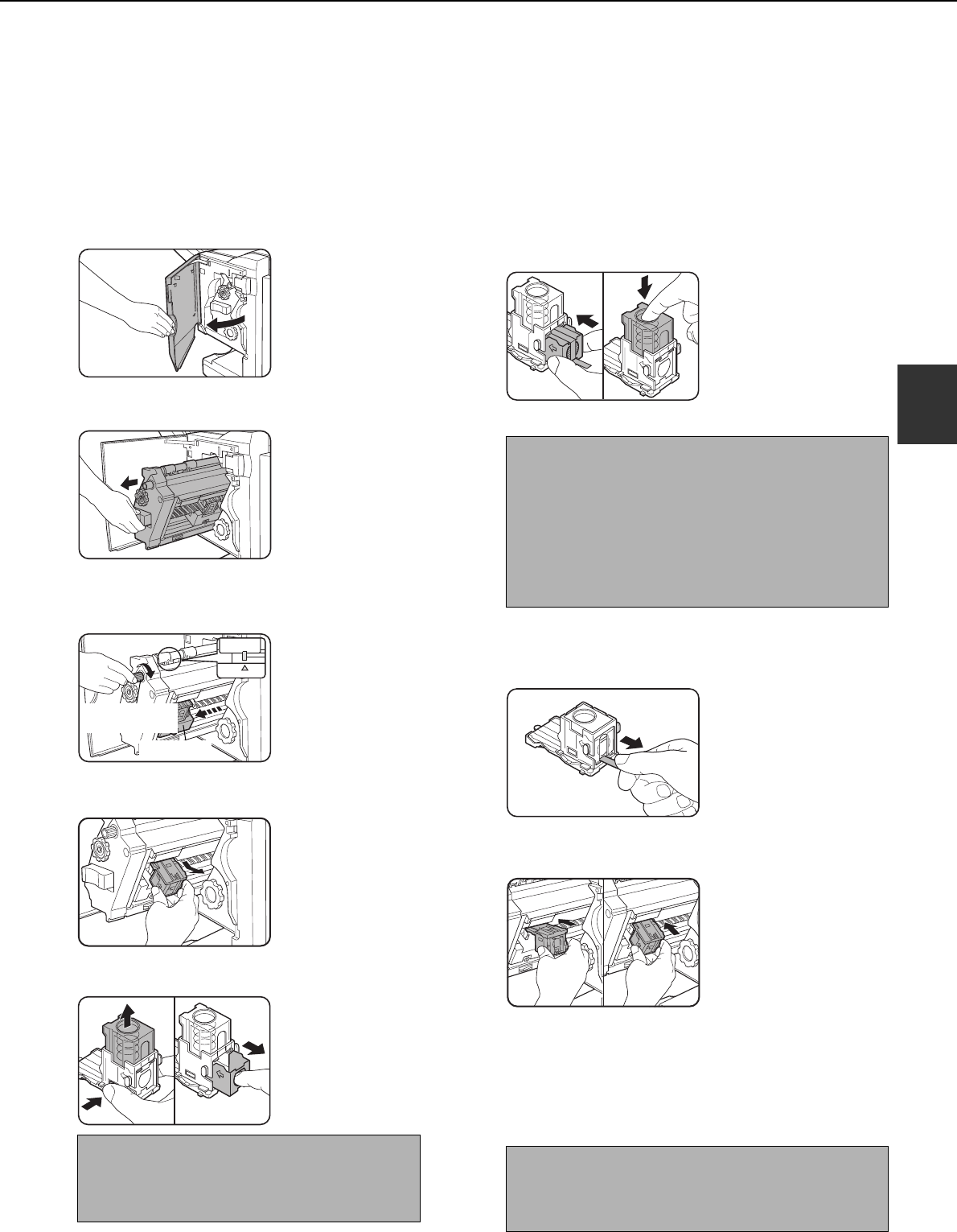 Follow the procedure below to replace the staple cartridge or remove jammed staples.