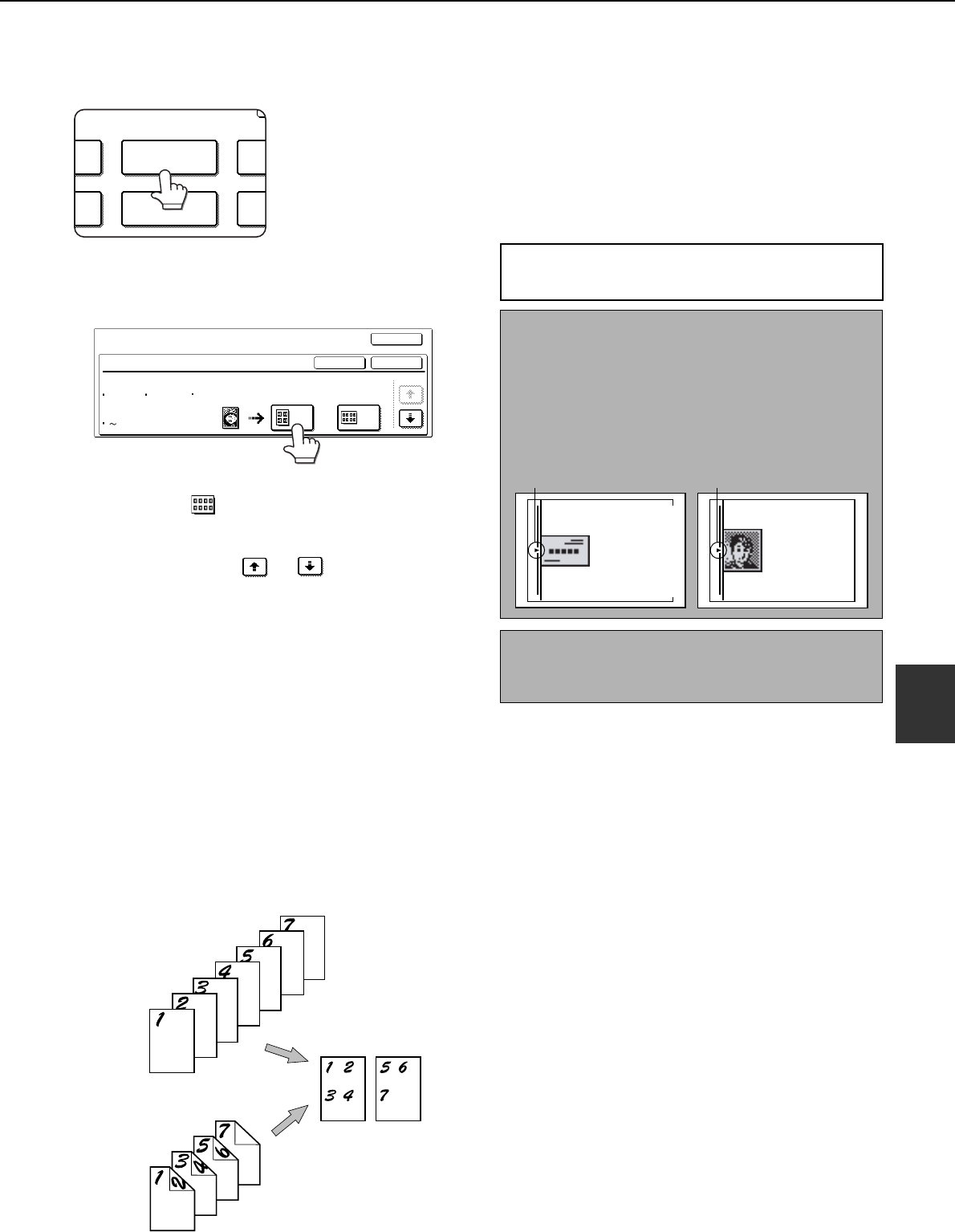 The multi shot function is used to copy up to four originals, collectively in a specified order, per sheet of copy paper