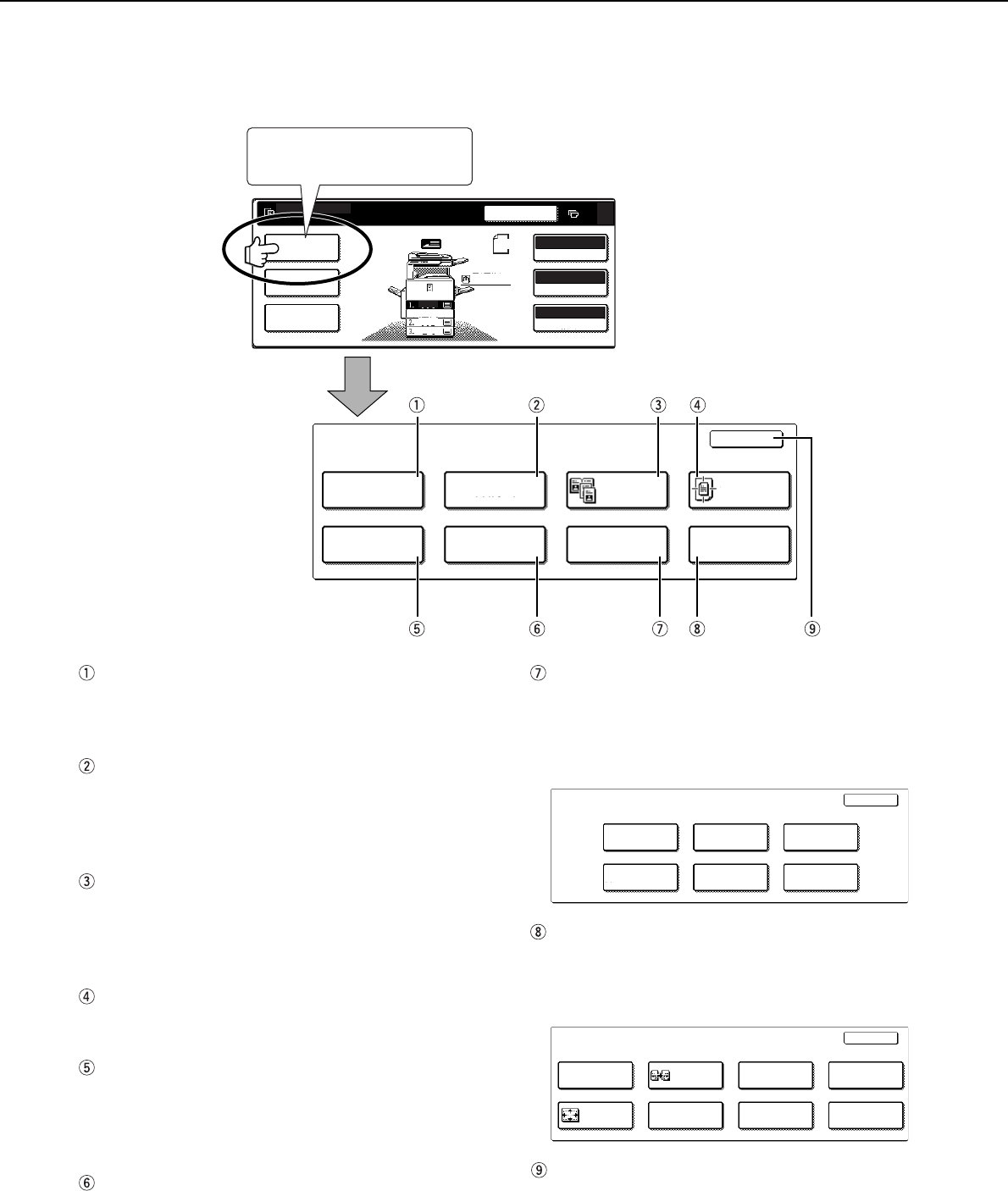 When the [SPECIAL MODES] key on the main screen of the copy mode is touched, the special modes screen