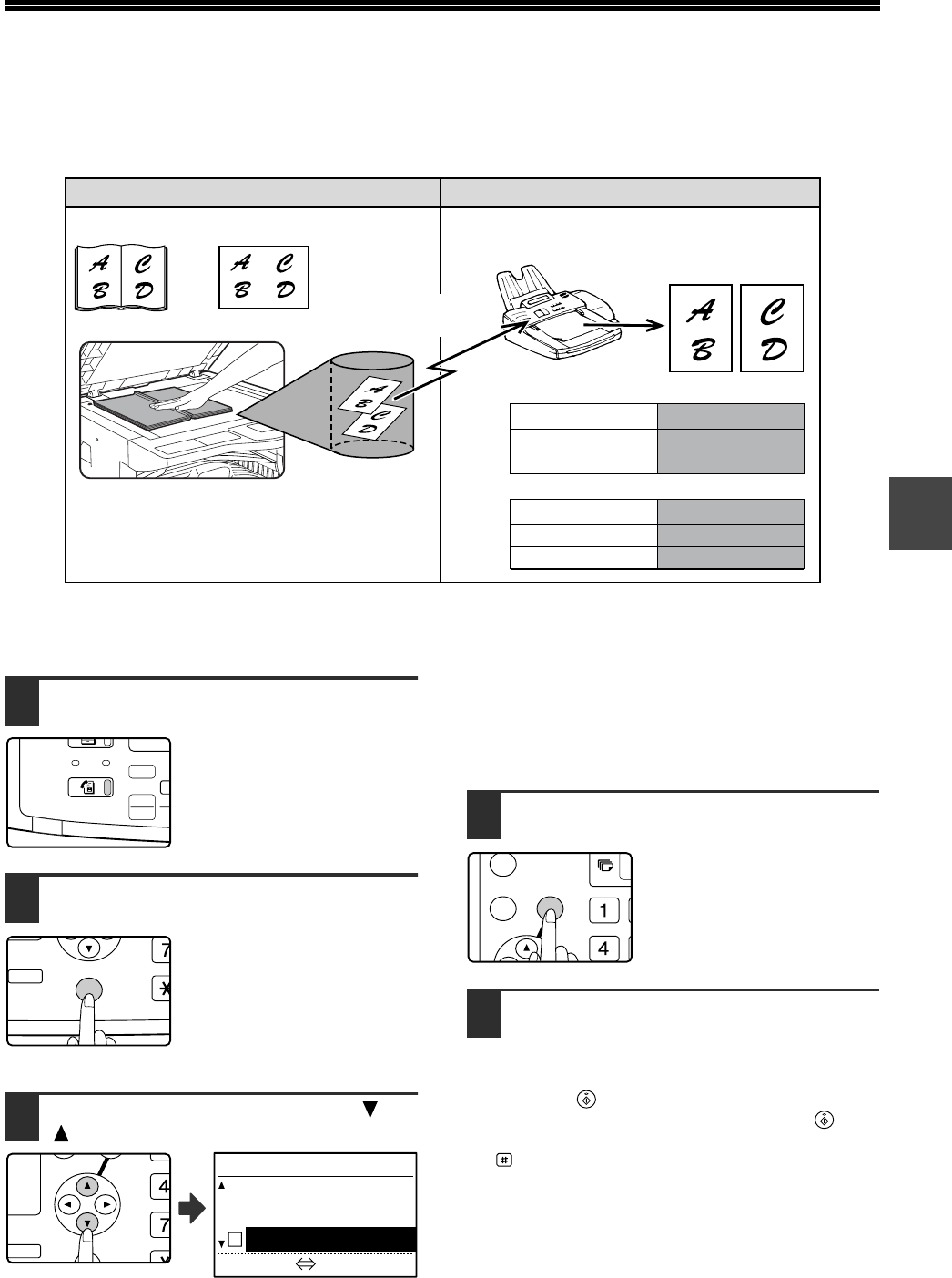 When faxing a book or other bound document, you can use this function to divide the two open pages of the book