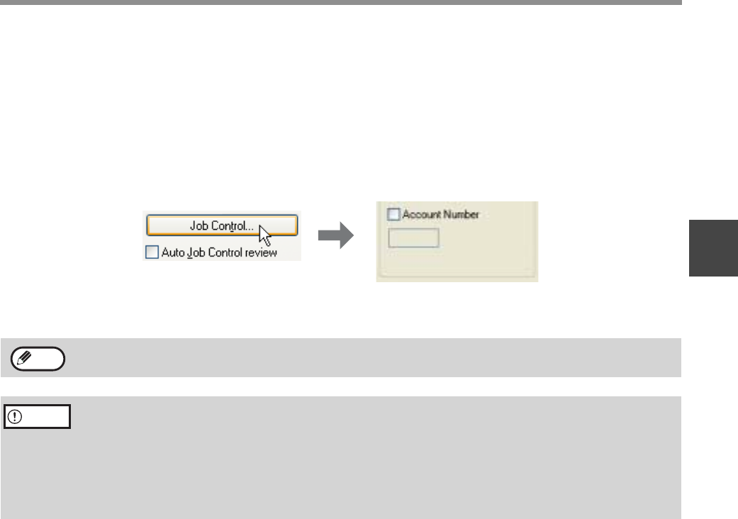 To open the account number entry screen, click the [Job Control] button in the [Main] tab of the printer driver setup