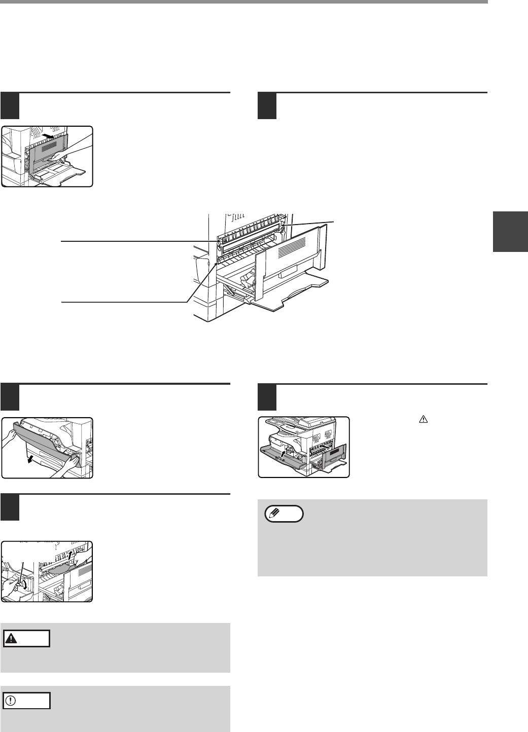 To remove a paper misfeed from the machine, the bypass tray and then the side cover must be opened. Check