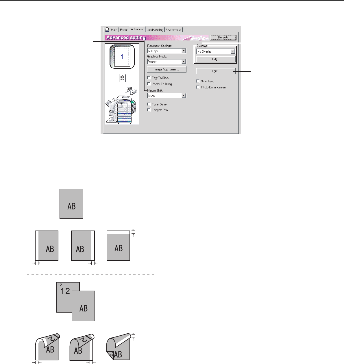 SELECTING PRINTING FUNCTIONS Settings in the [Advanced] tab (continued)