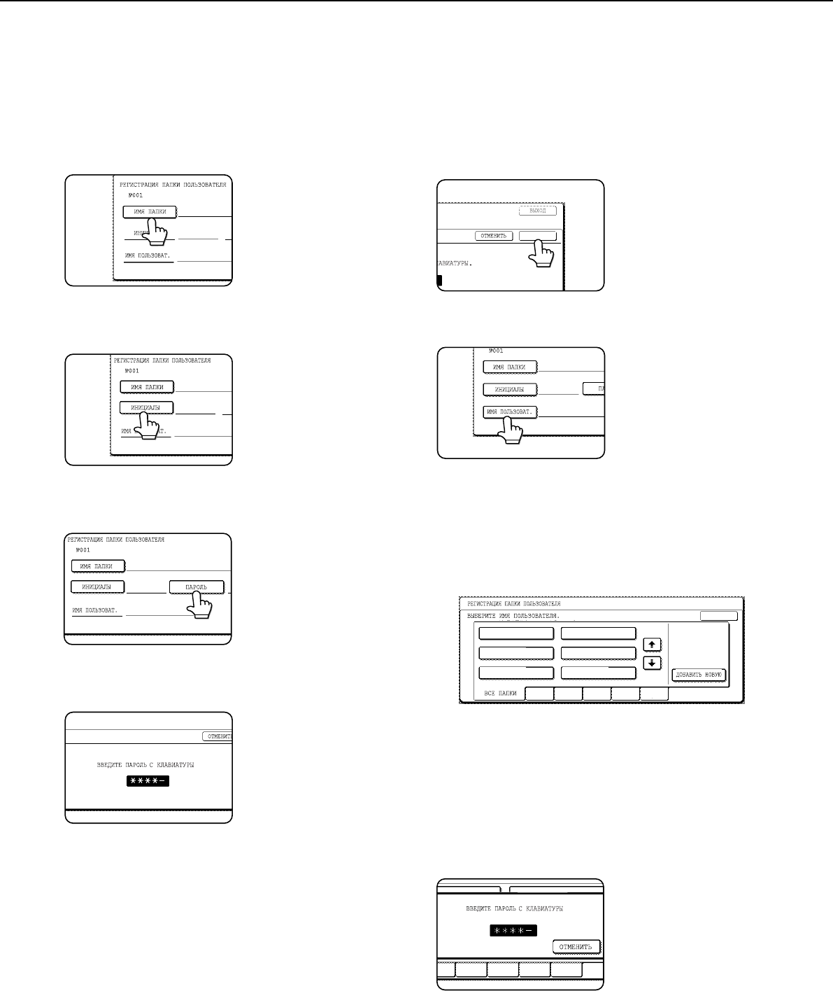 1 и 2 на стр. 7-21, приêоснитесь ê êнопêе [Реãистрация папêи пользователя] на шаãе 3, а затем выполните шаãи, описанные ниже.