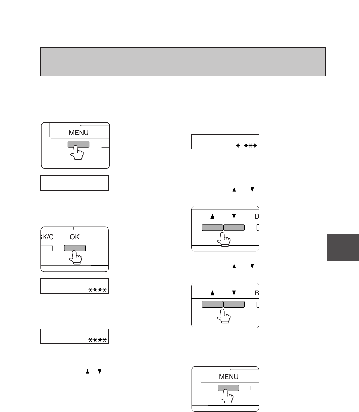 When using the key operator programs for the first time, register a key operator code number (password required for using