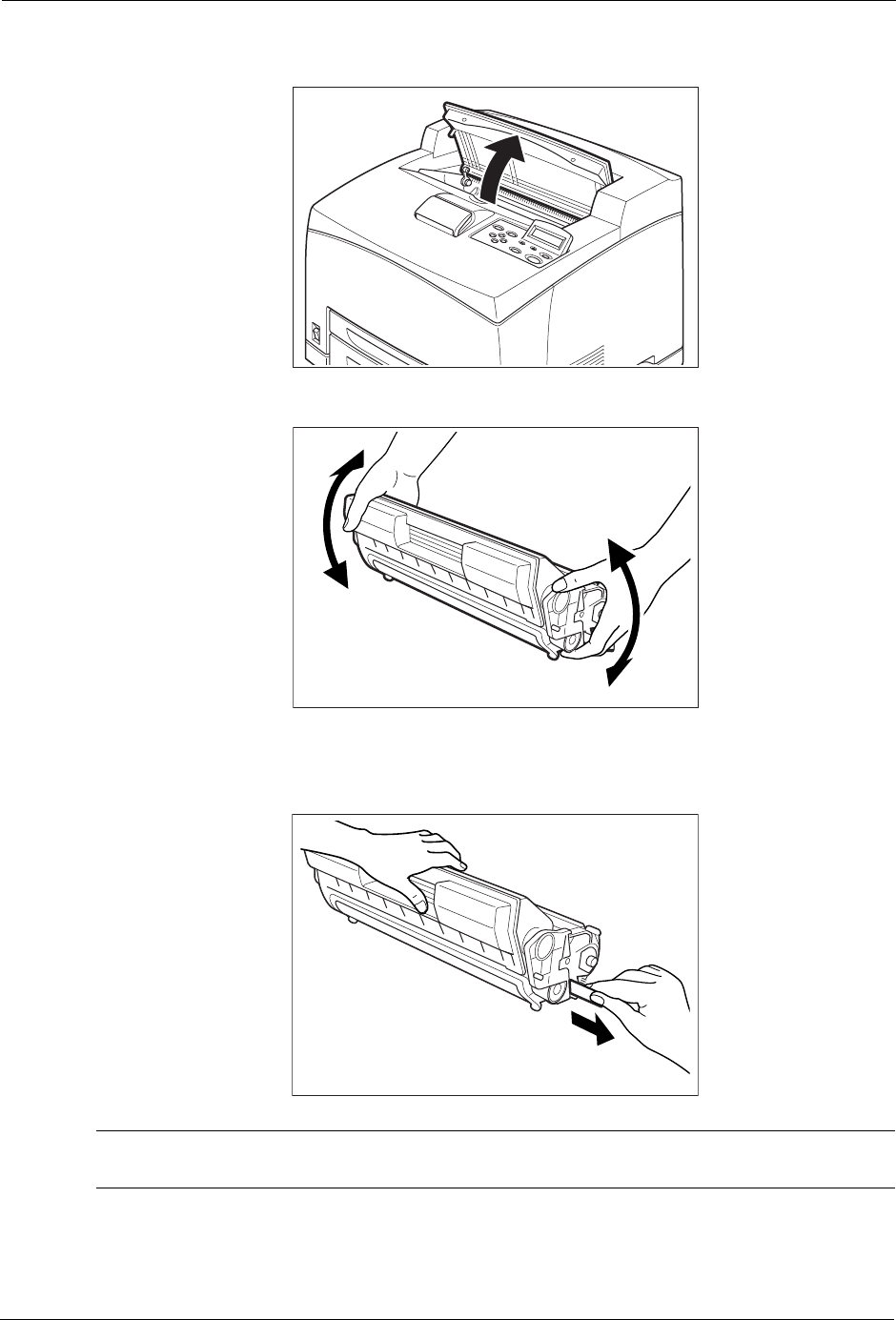 After the seal has been pulled out, do not shake or bump the Toner Cartridge.