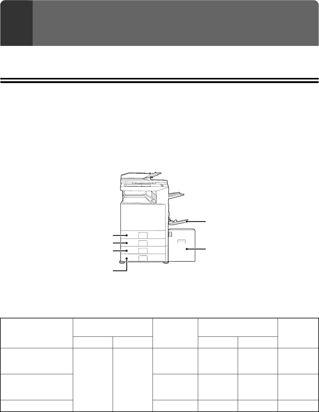 The trays are identified by the names indicated below. For the sizes and types of paper that can be loaded in each tray,