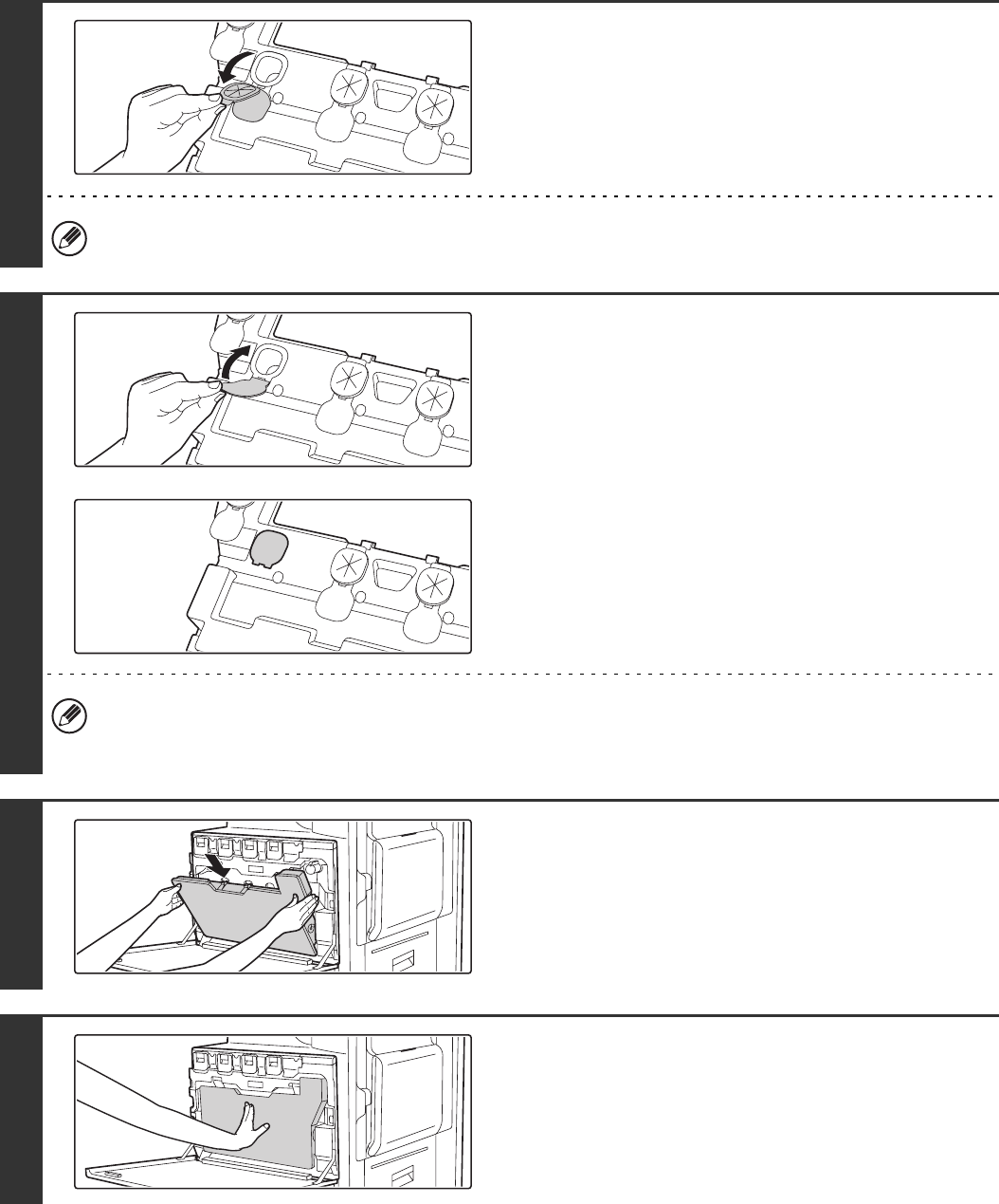 Grasp the edge of each black seal and insert it into a hole in the