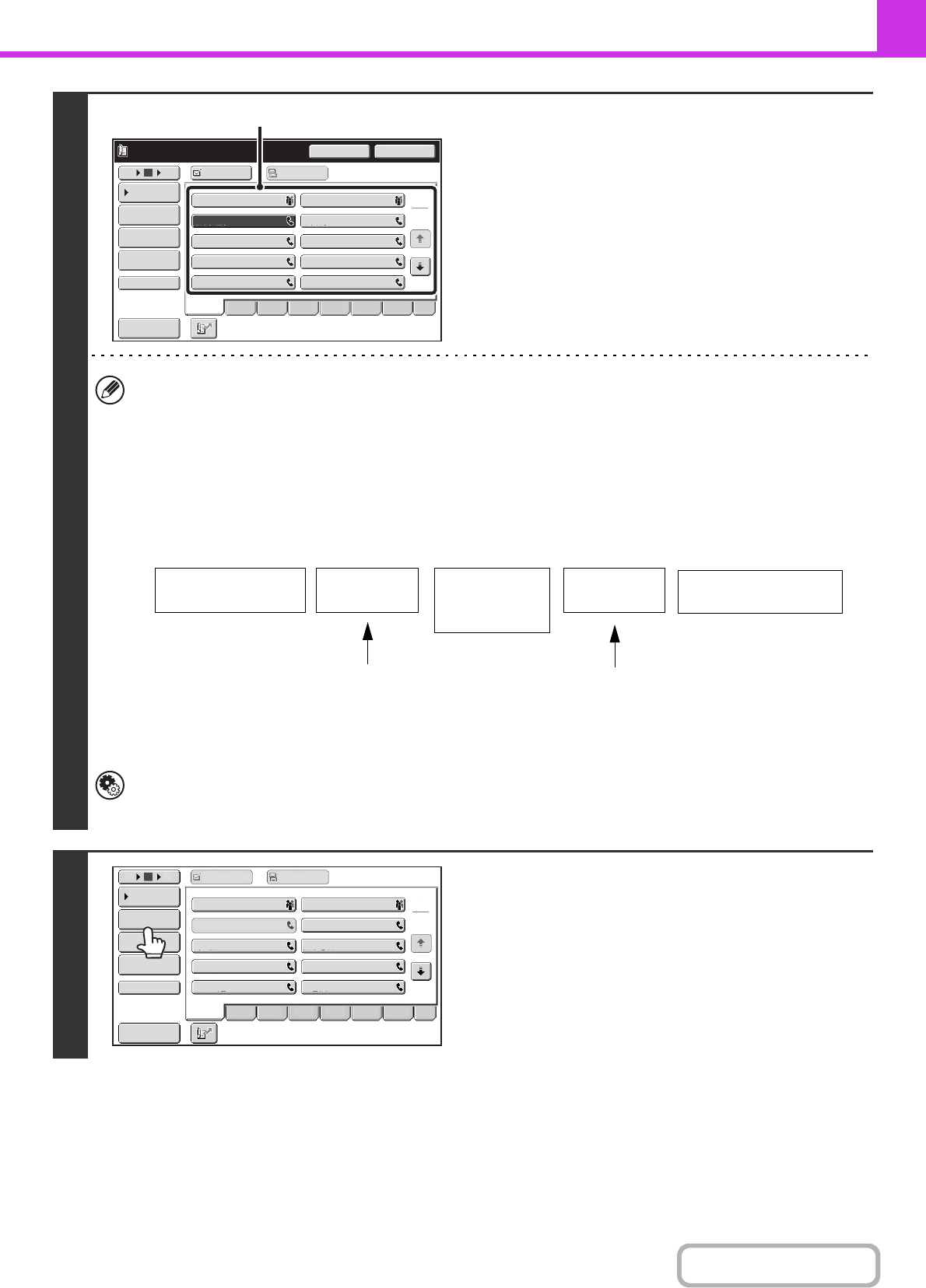 • In addition to specification by one-touch key, a destination can also be specified using a search number. You can