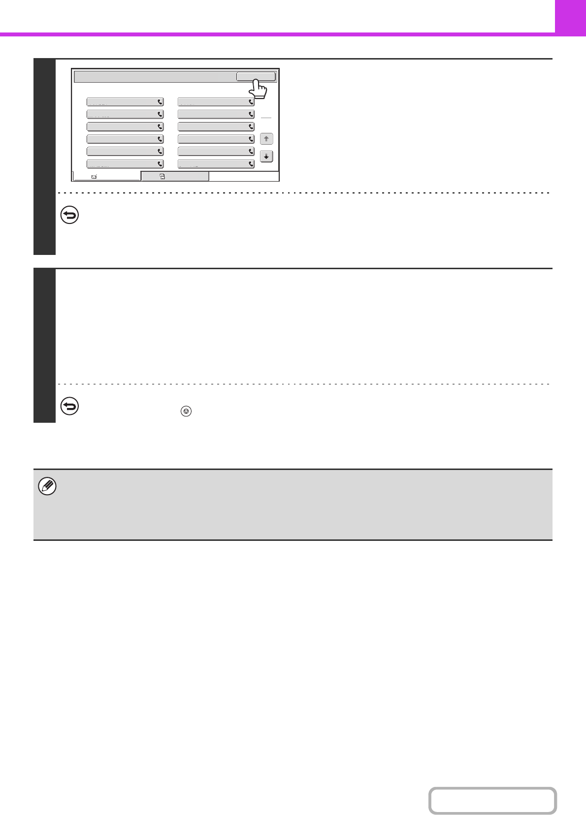 Touch the key of the destination that you wish to cancel. A message will appear to confirm the deletion. Touch the