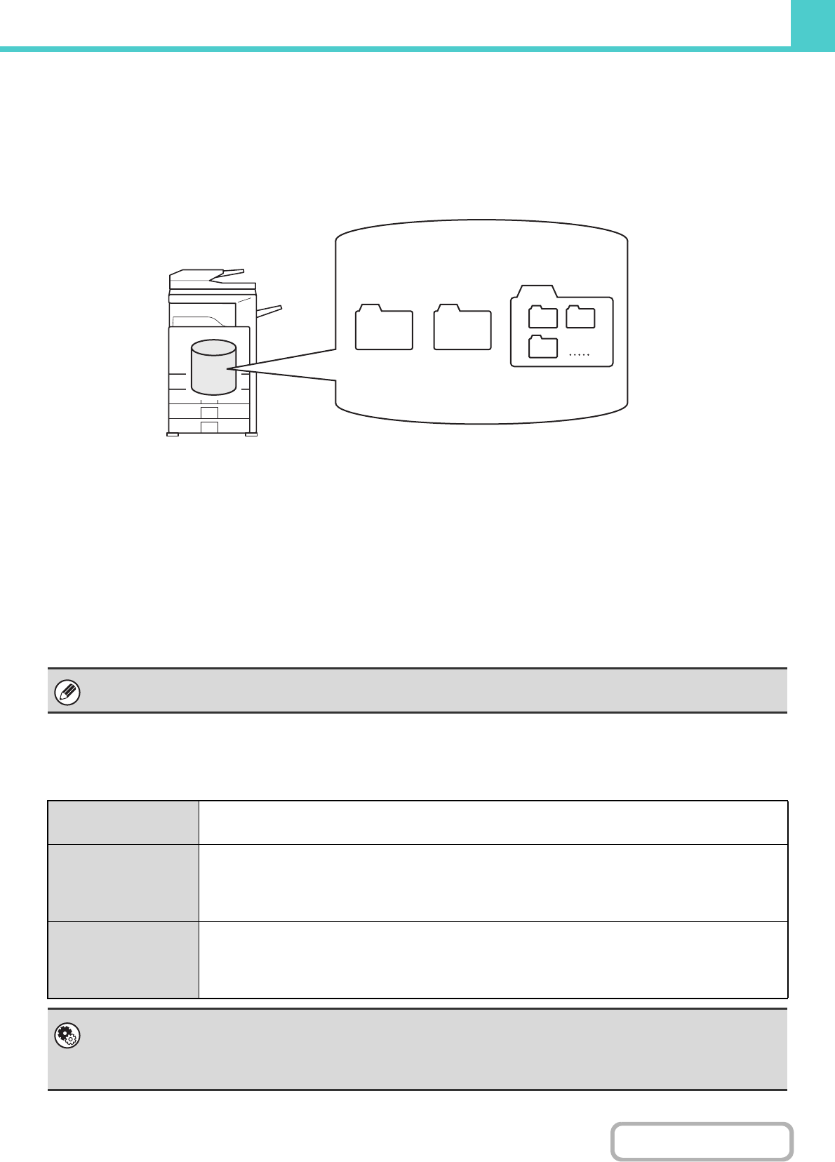 When a document is scanned using the [File] key and a folder is selected, the document is stored in the specified folder.
