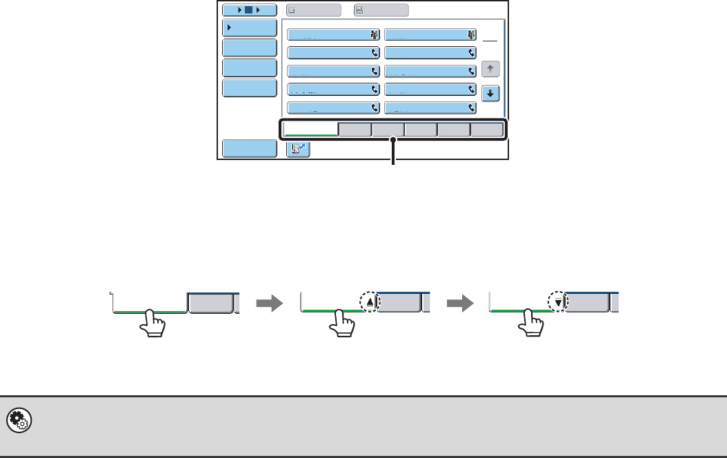 Each time the displayed index tab is touched, the display order changes in the following order: search numbers (page