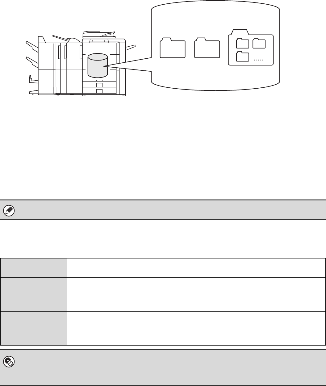 When a document is scanned using the [File] key and a folder is selected, the document is stored in the specified folder.