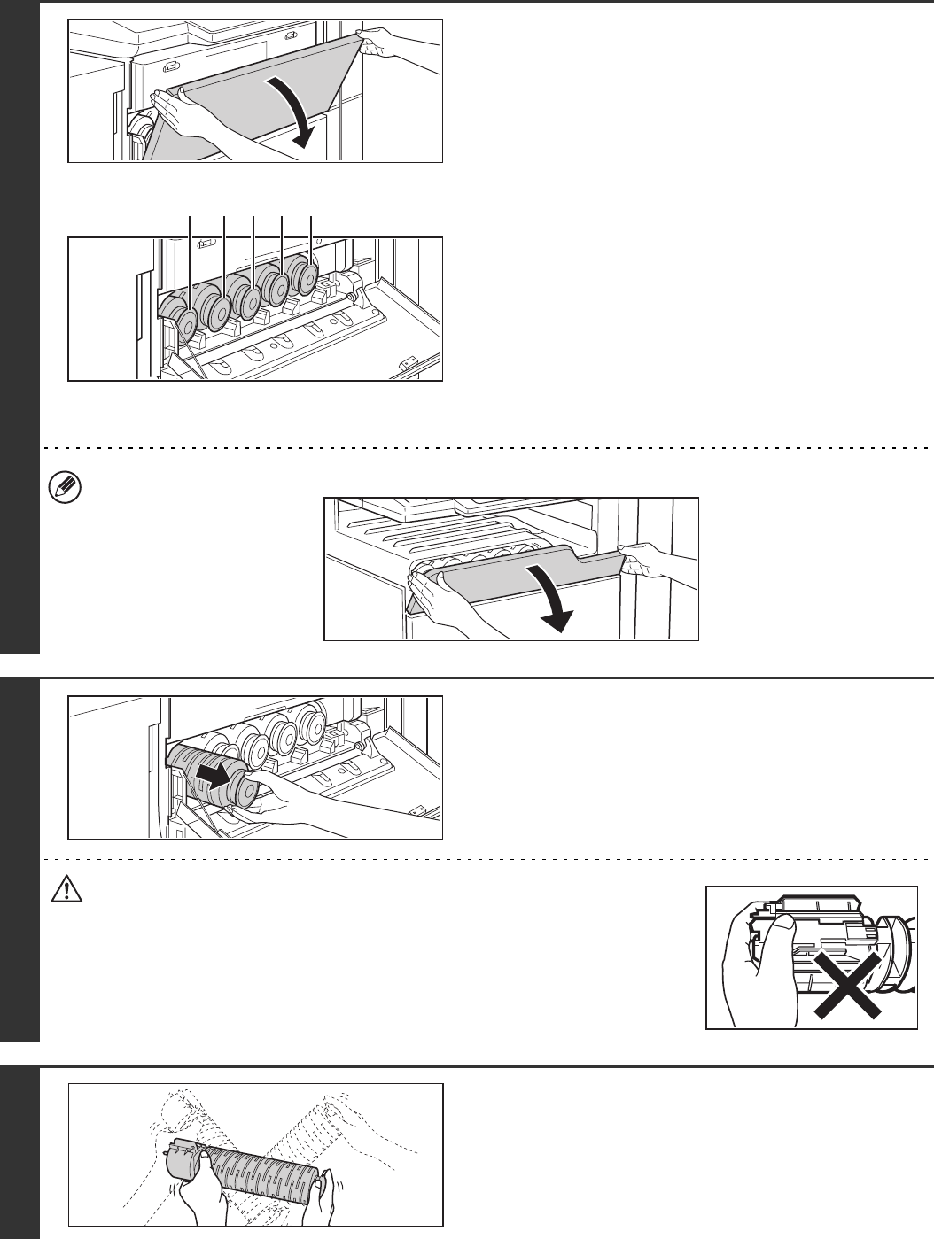 When pulling out the toner cartridge, do not touch the toner fill hole.