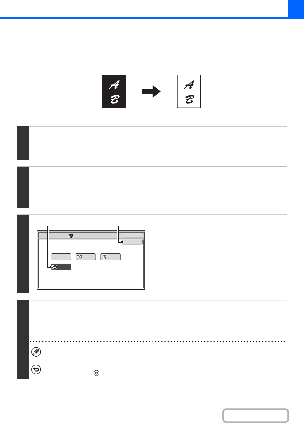 Originals with large black areas (which use a large amount of toner) can be copied using Black/White Reverse to reduce