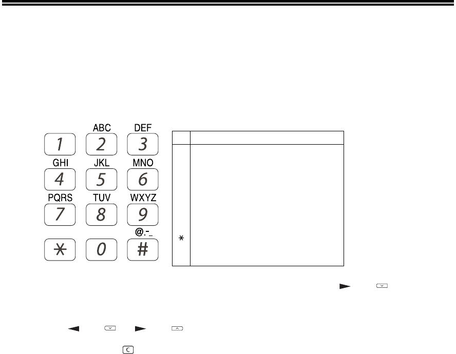 first, followed by letters in the order marked above the key). The keys used for entering characters are shown below.