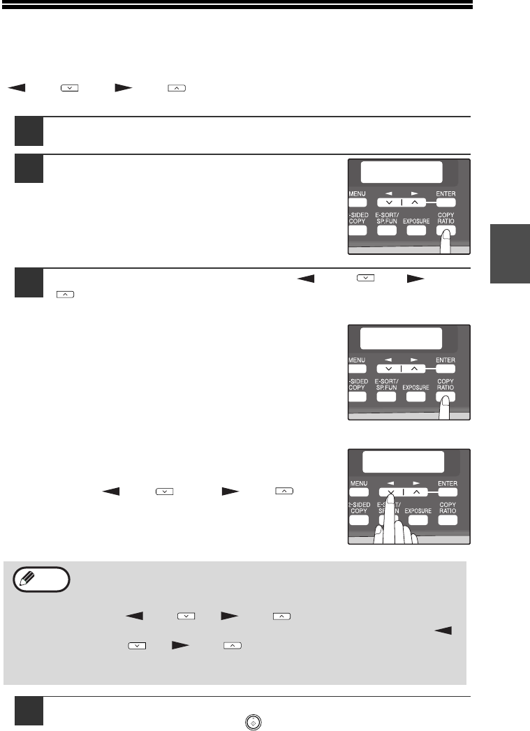 Press the [COPY RATIO] key and/or [ ] key ( ) or [ ] key