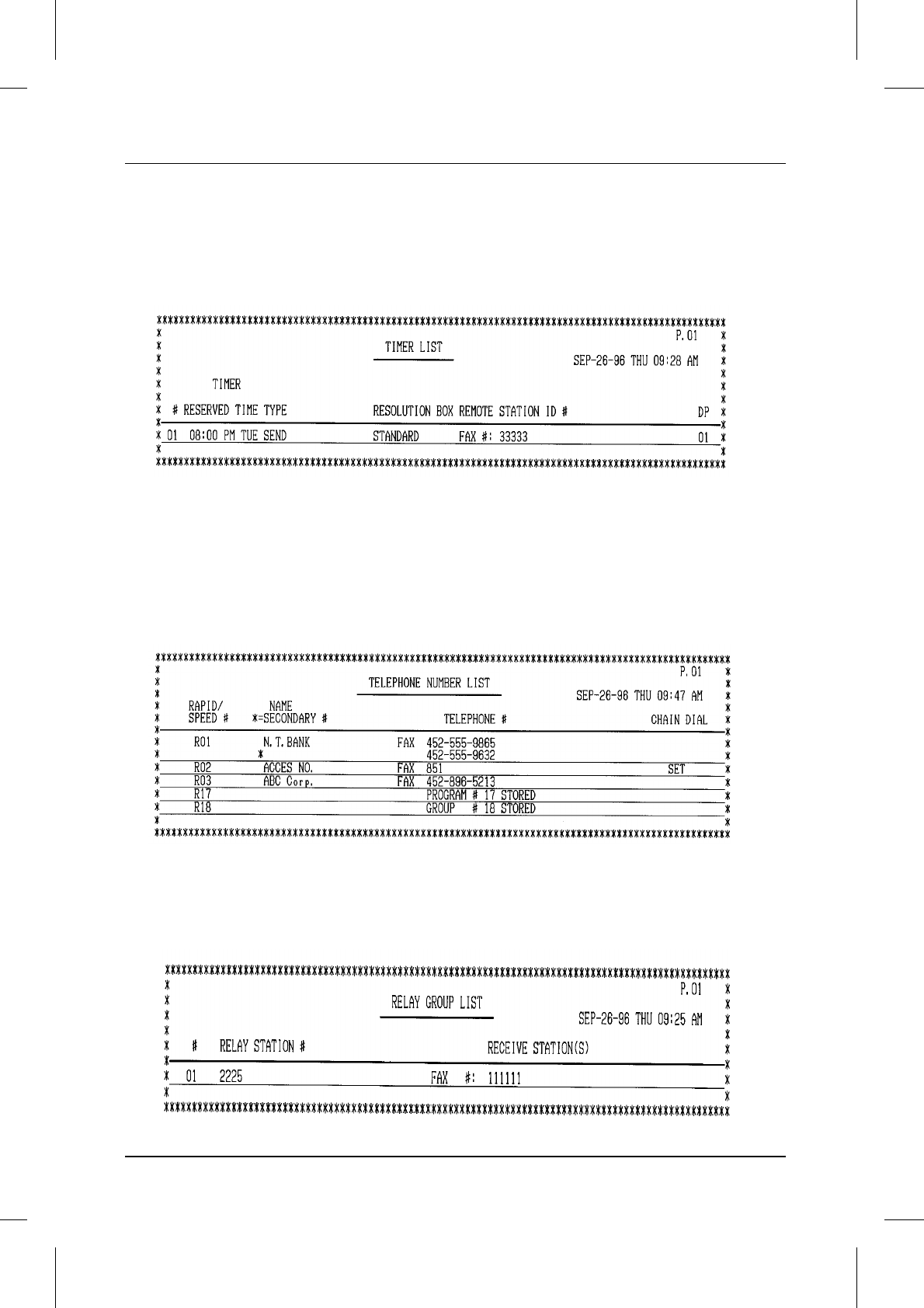 This list shows the fax and voice numbers which have been stored for automatic