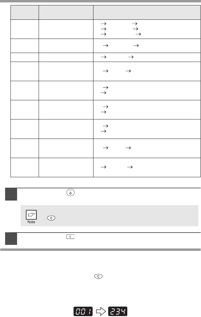 To change the setting or to set another mode, press the clear