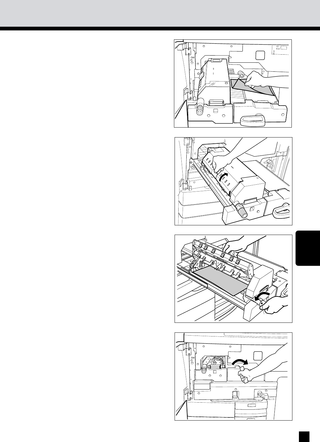 If any paper is misfed inside, remove it as