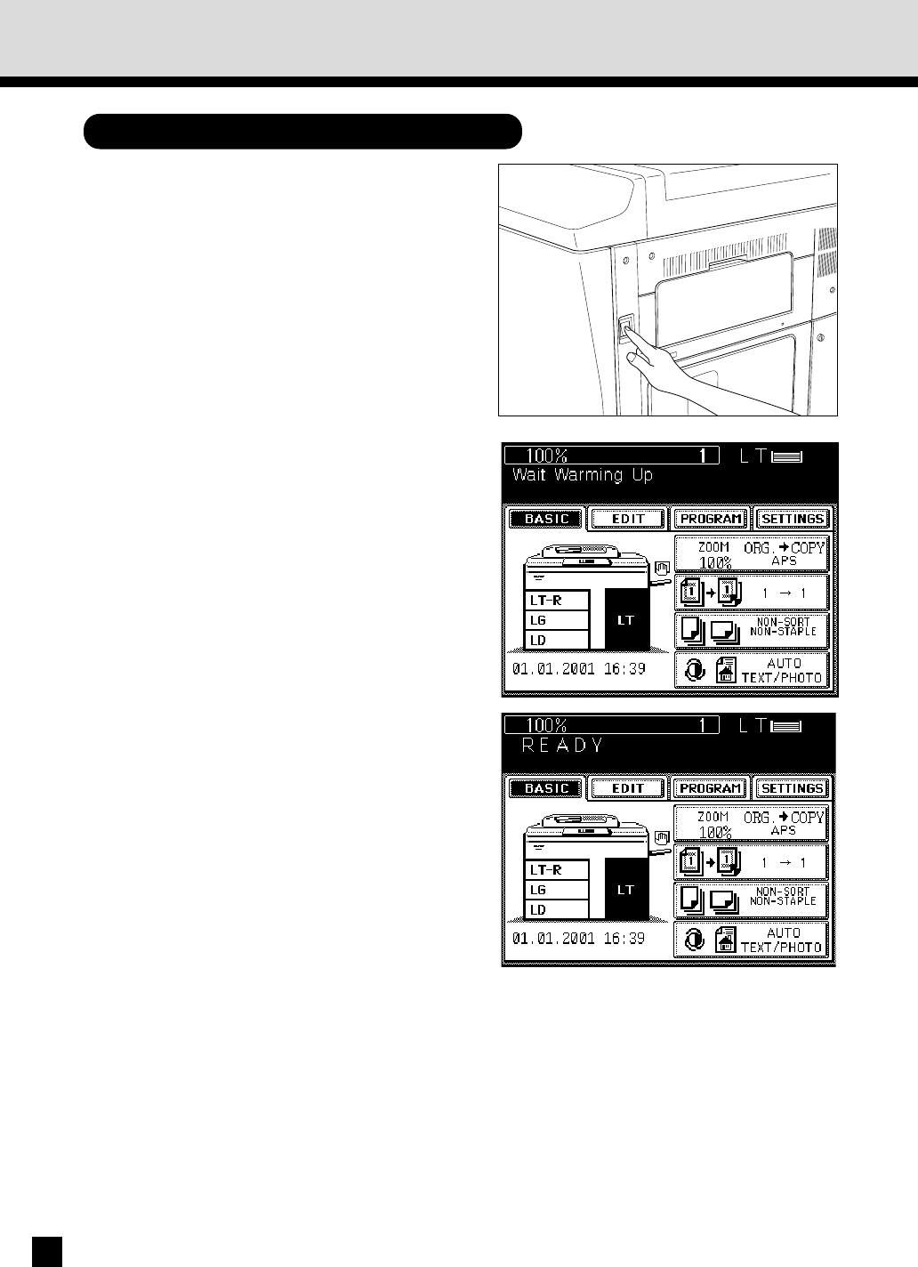 . Wait until the copier becomes ready.