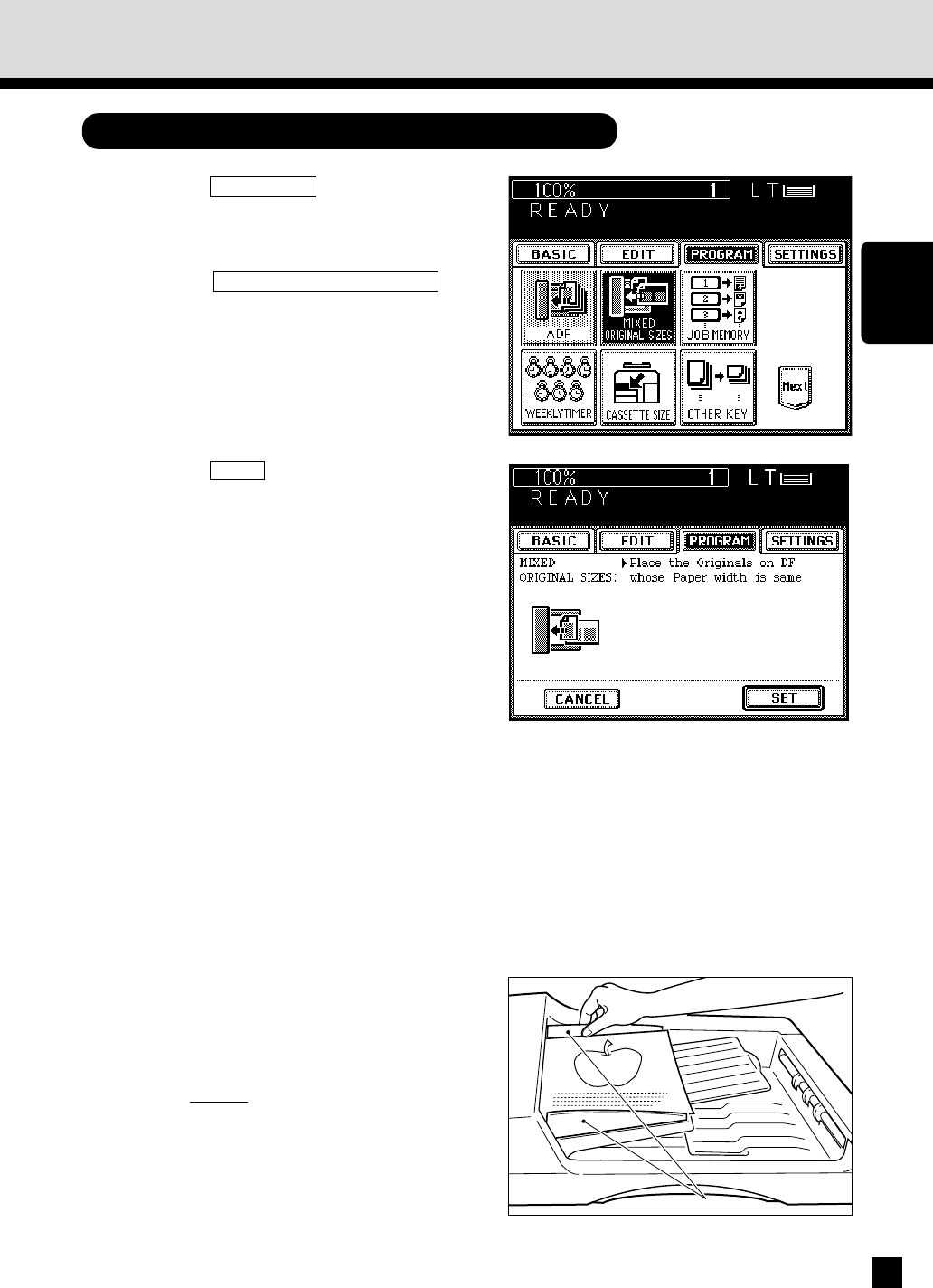 Press the MIXED ORIGINAL SIZES key.