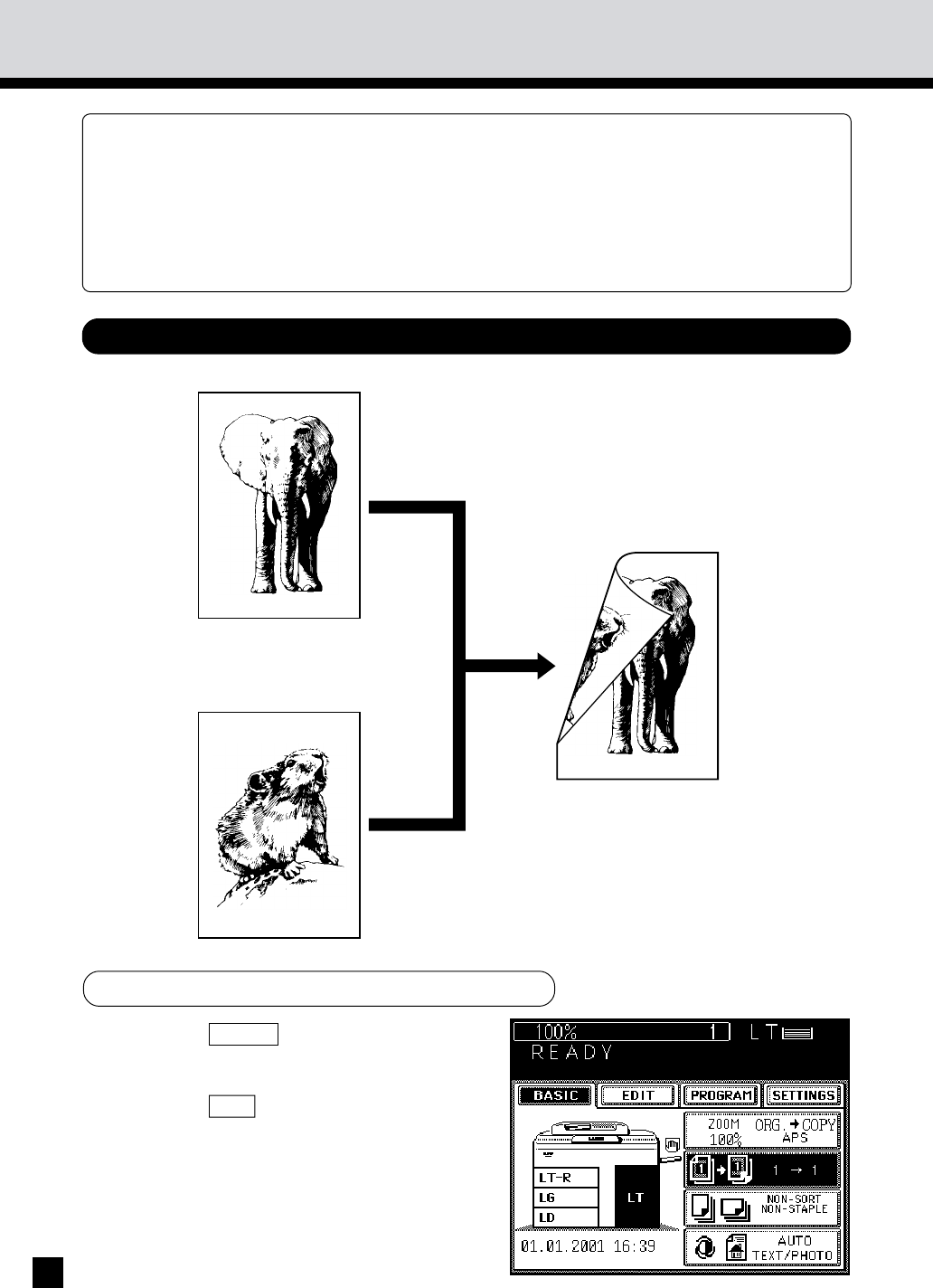 • Using the dual-page function – For duplex-copying from the facing pages of a book or two