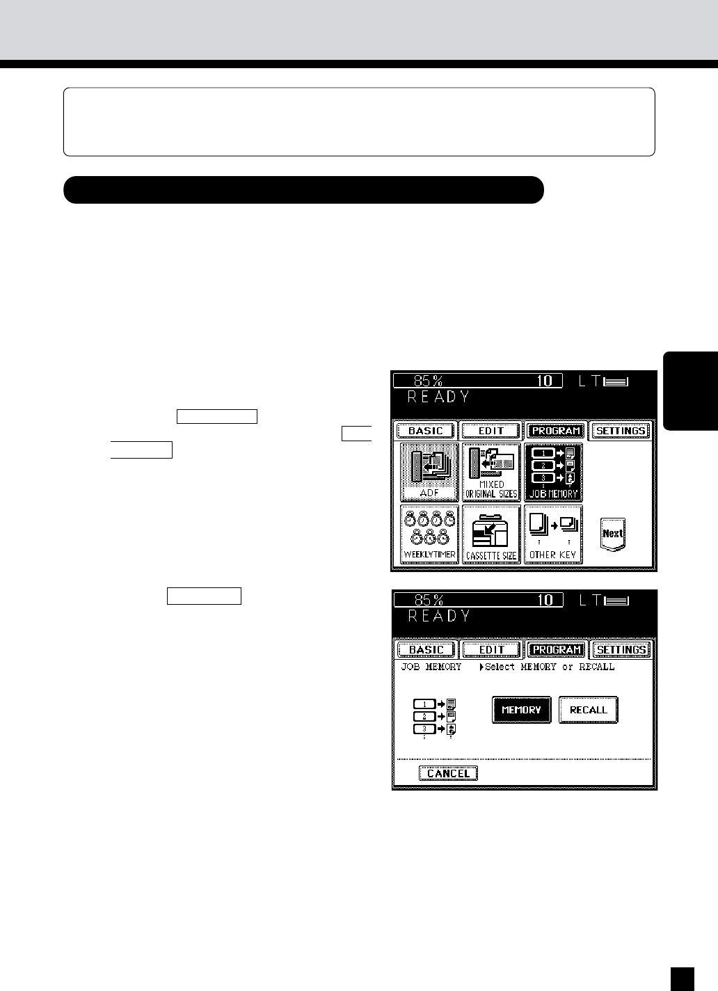 duplex copying modes and image shift modes. You can store up to four combinations.
