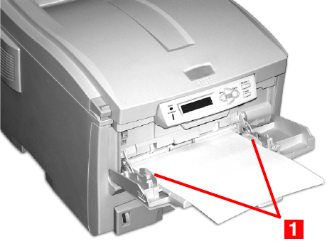 3. Load the print media. Adjust the guides (1) to the size