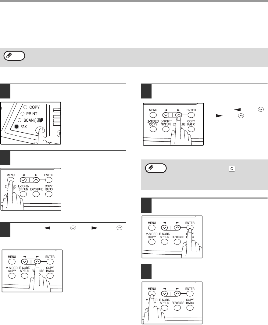 The general procedure for configuring settings for the fax function is explained below. Follow this procedure to
