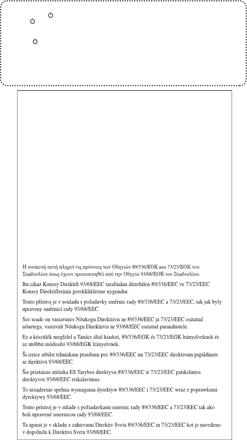 Dette udstyr overholder kravene i direktiv nr. 89/336/EEC og 73/23/EEC med tillæg nr. 93/68/EEC.