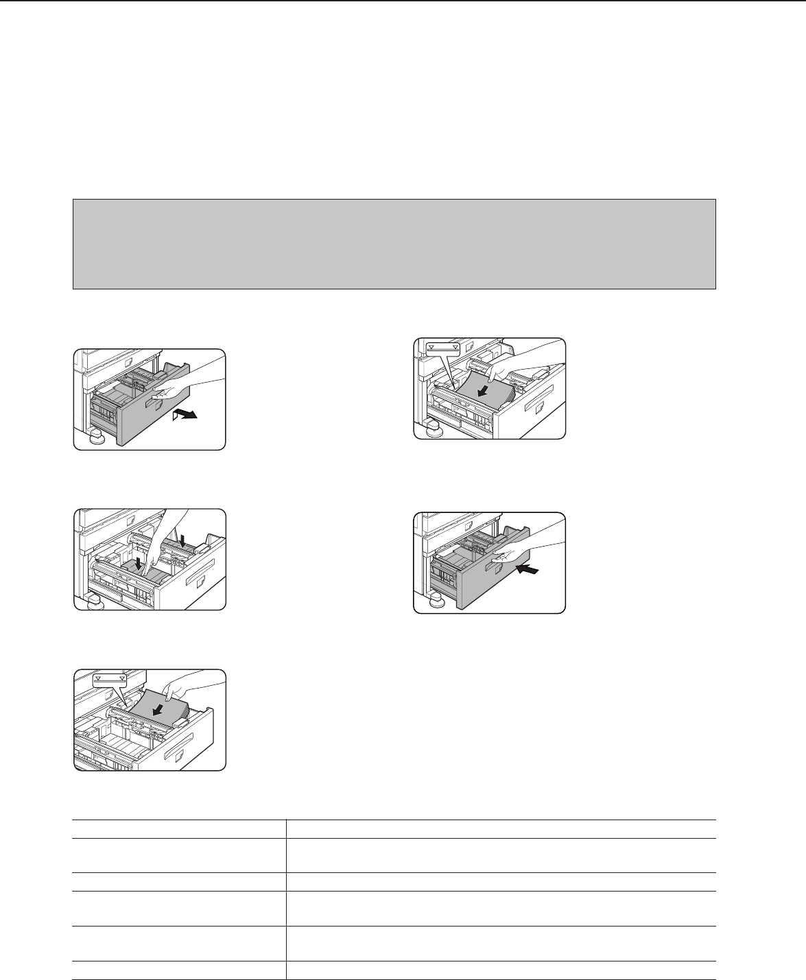 The upper paper tray is equivalent to the multi purpose drawer. The method of loading paper and the paper that can be