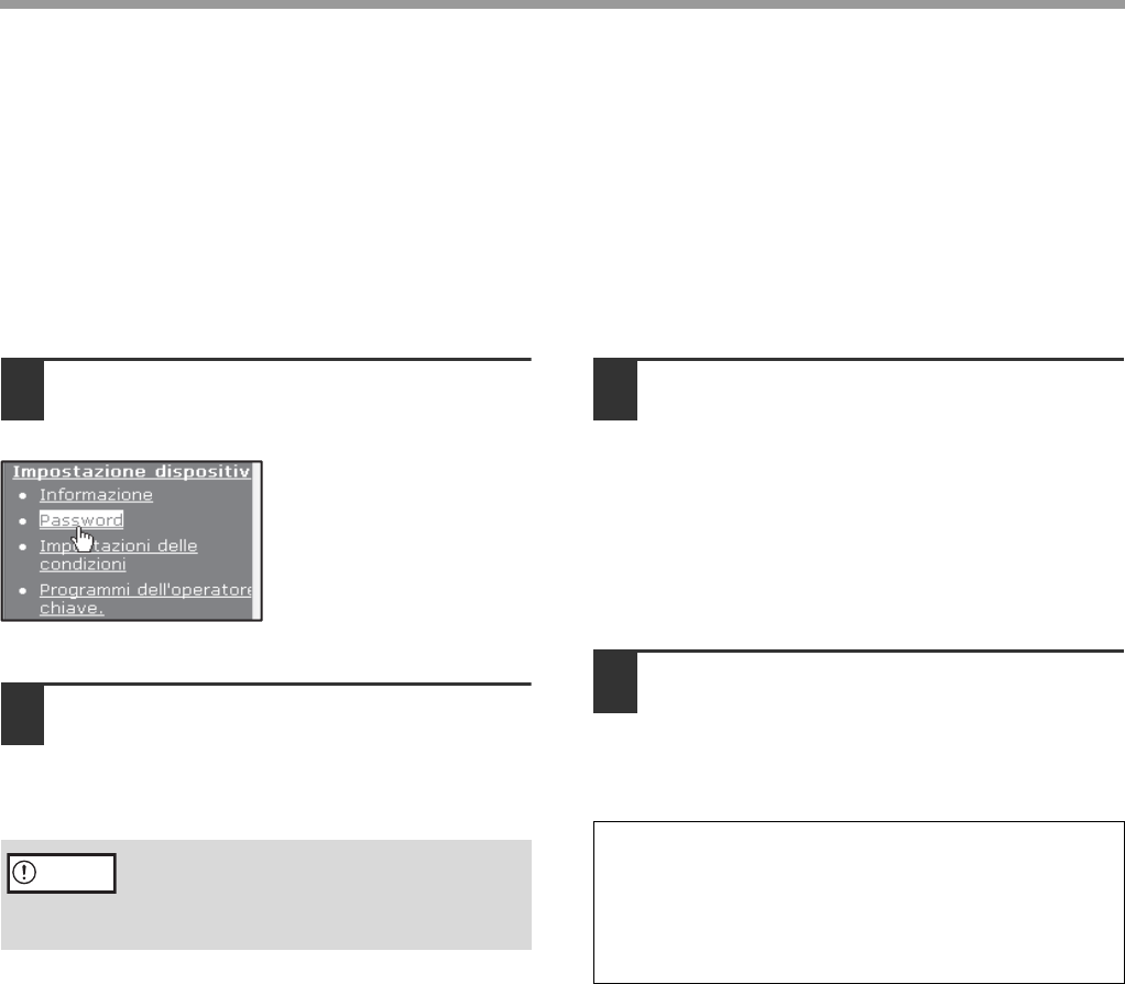 clic su [Password] nel riquadro del menu). L'amministratore deve modificare la password predefinita con una nuova