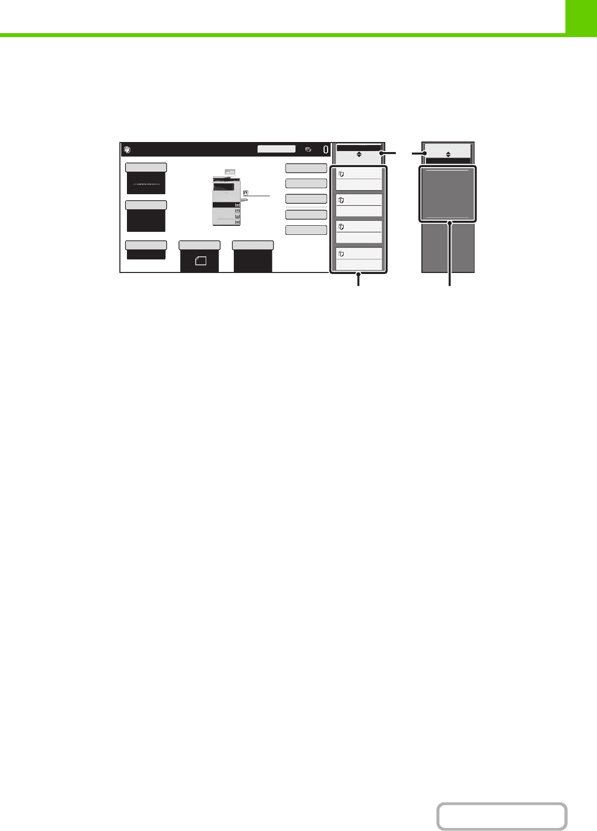 When the base screen of a mode appears, the right side of the touch panel shows the machine's status.