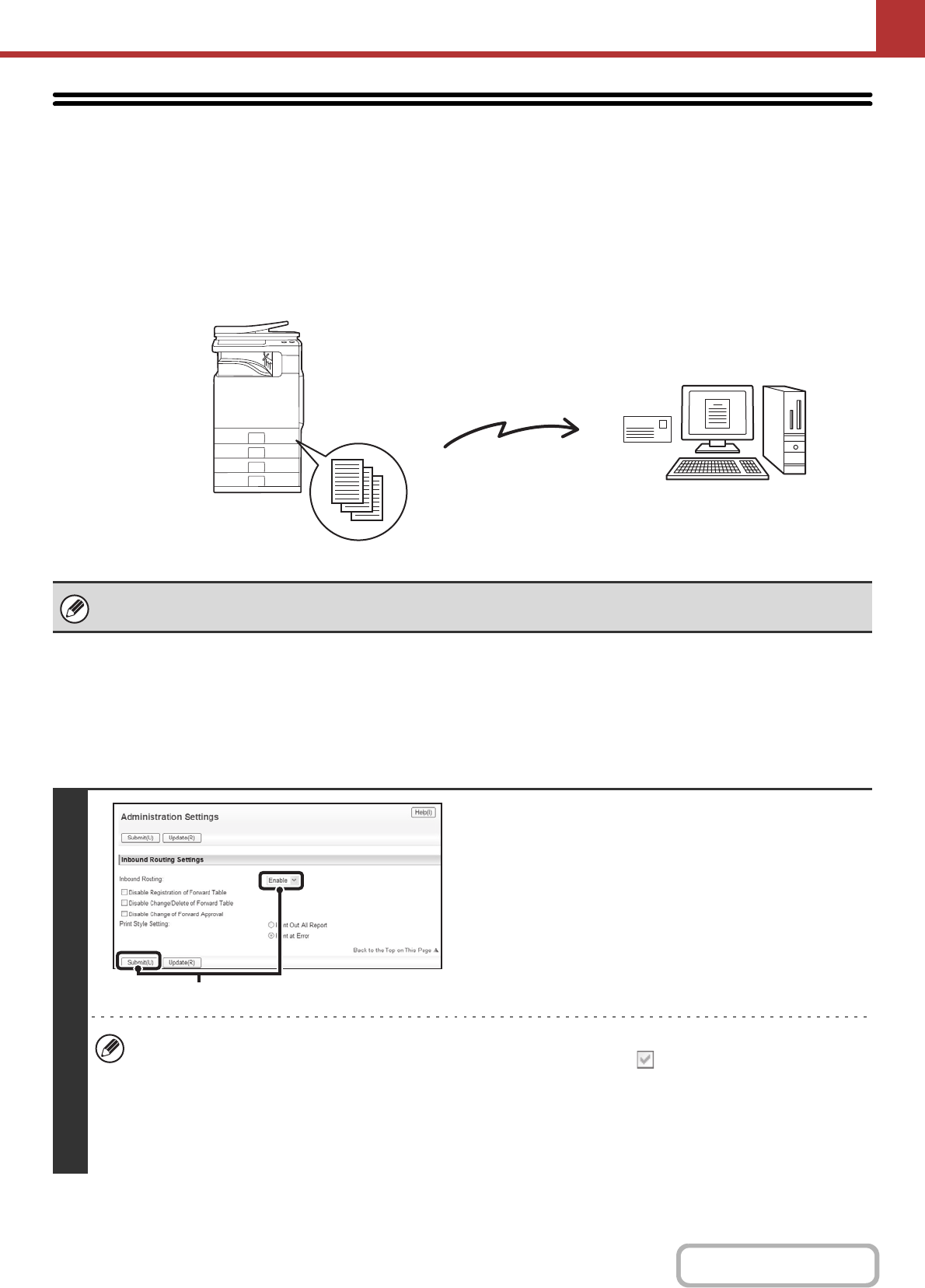 When inbound routing is enabled, you can also specify whether or not you wish the machine to print the forwarded faxes.