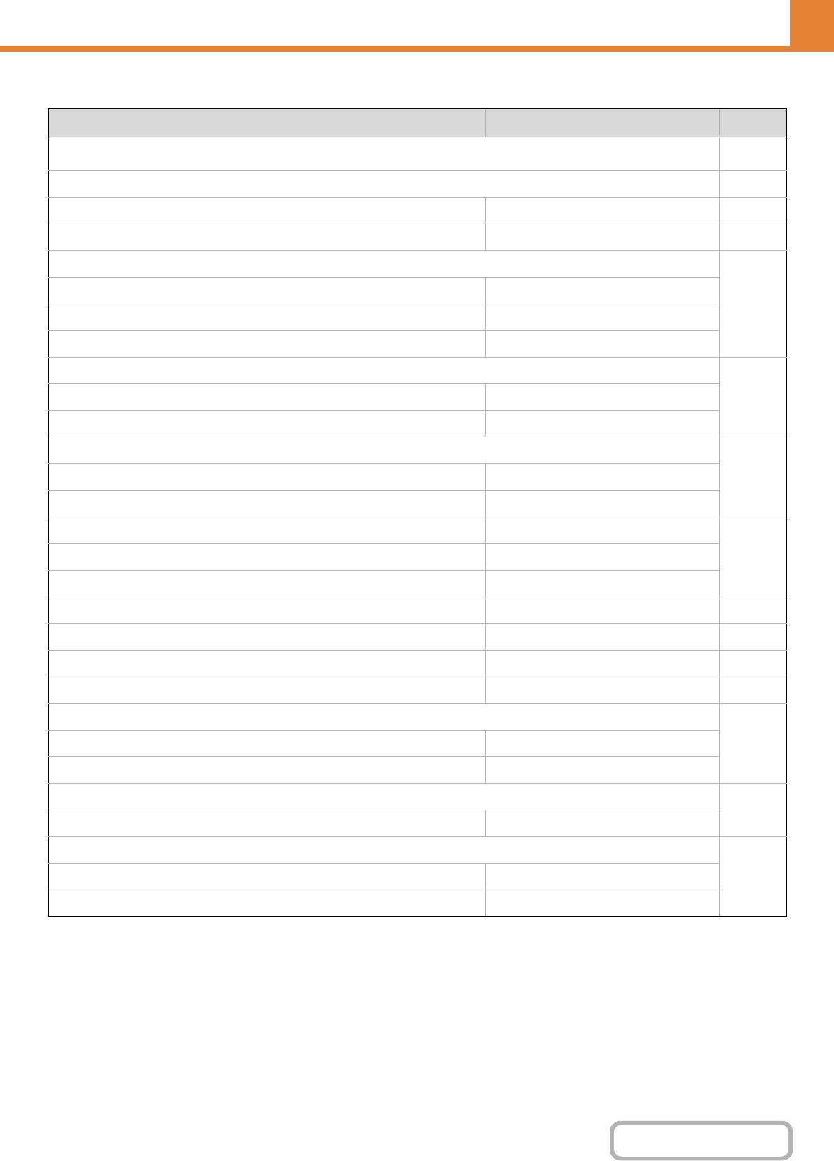 Item Factory default setting Page