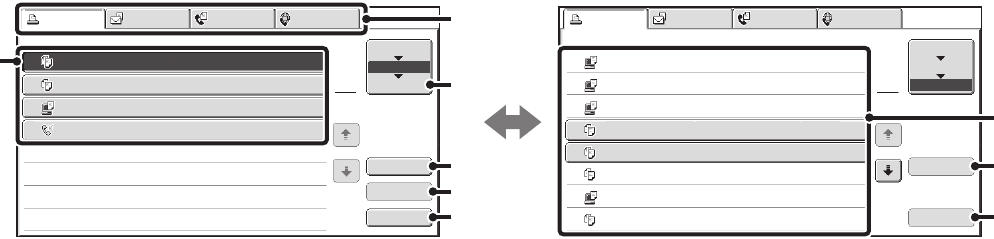 screen switches between the job queue screen and the completed jobs screen each time the job status screen selector