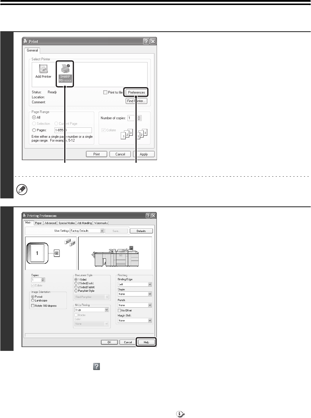 When selecting settings in the printer driver, you can display Help to view explanations of the settings.
