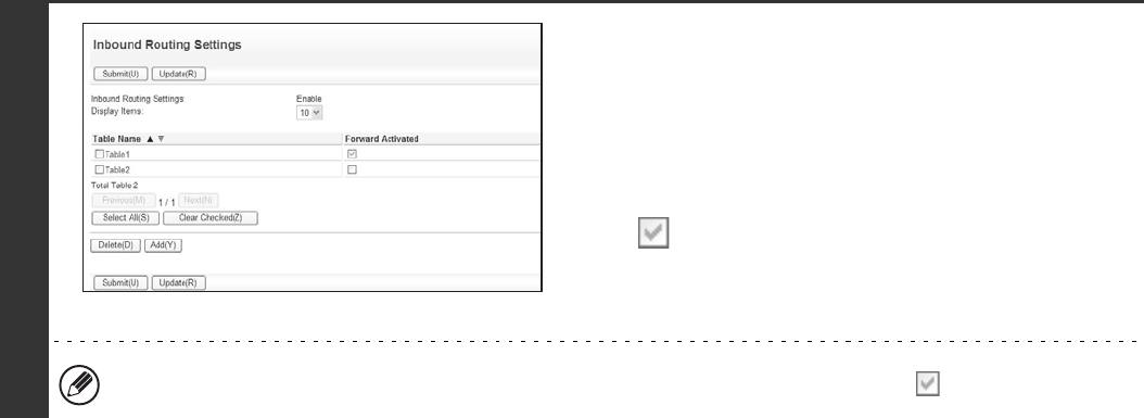 To delete a forwarding table, click the checkbox next to the table name so that it is selected and click [Delete].