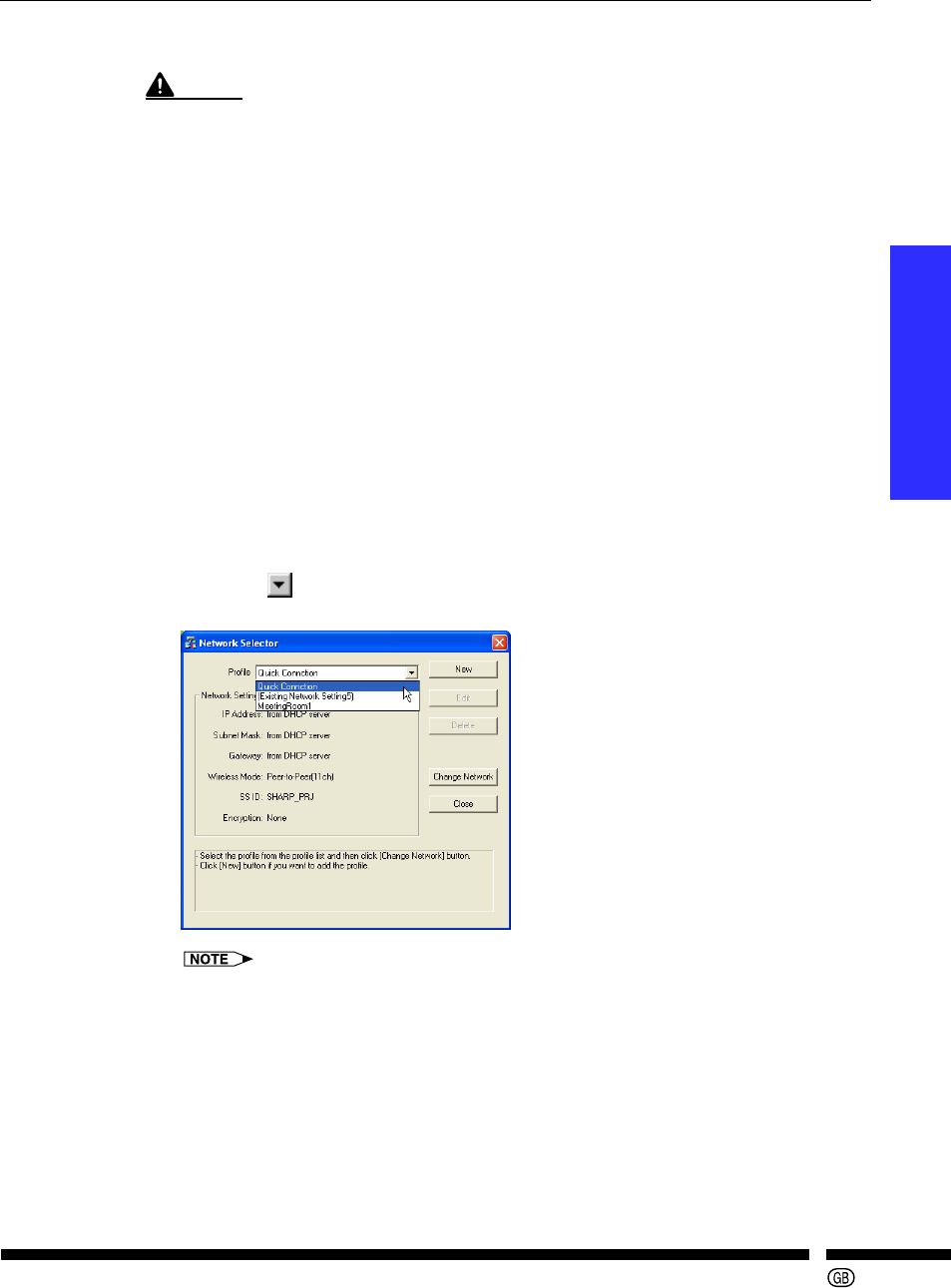 • When the profile has been set to “Quick Connection (from DHCP server)”, network