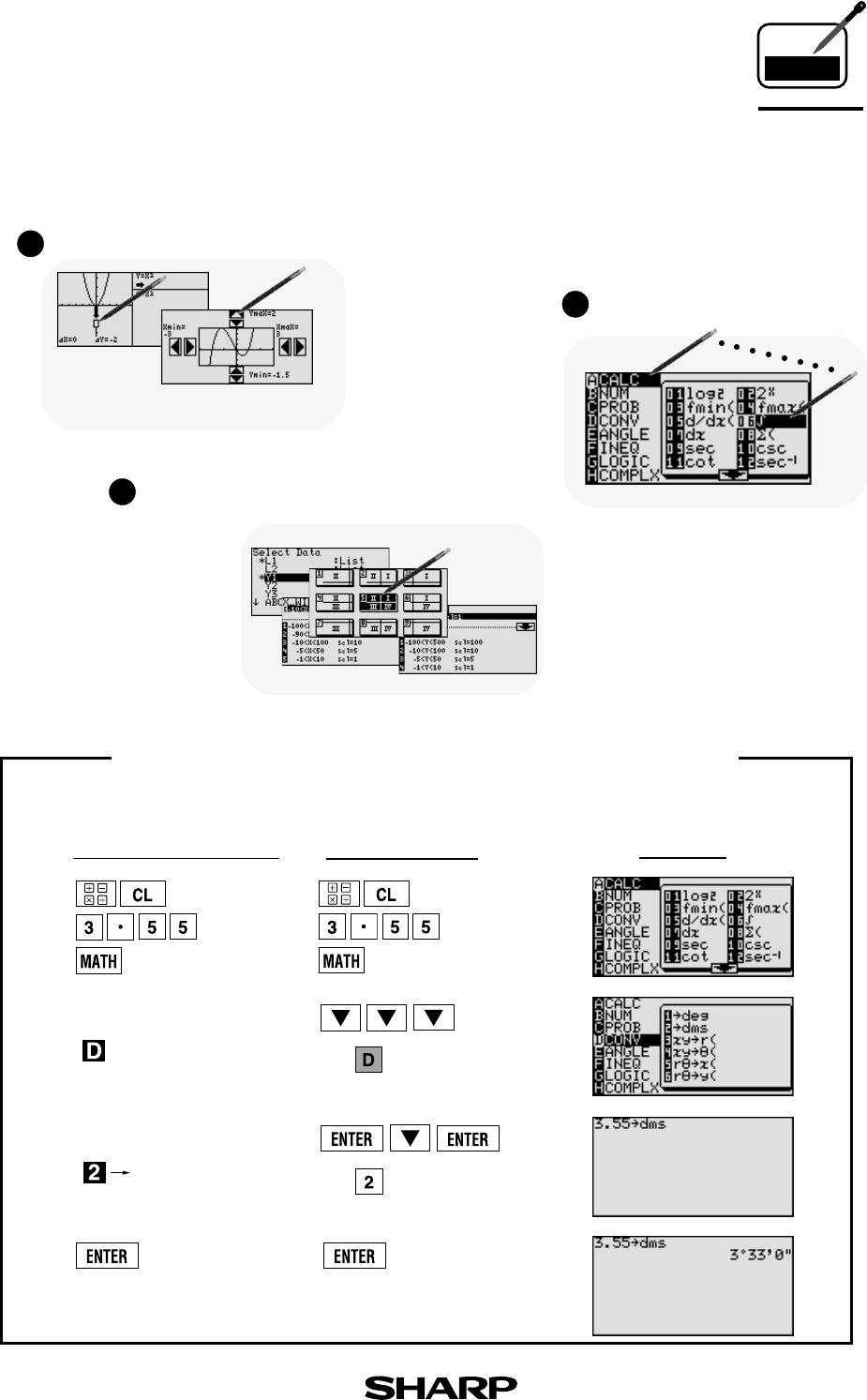 Pen-touch screen offers convenient operations. Use it to select from the menu displays or
