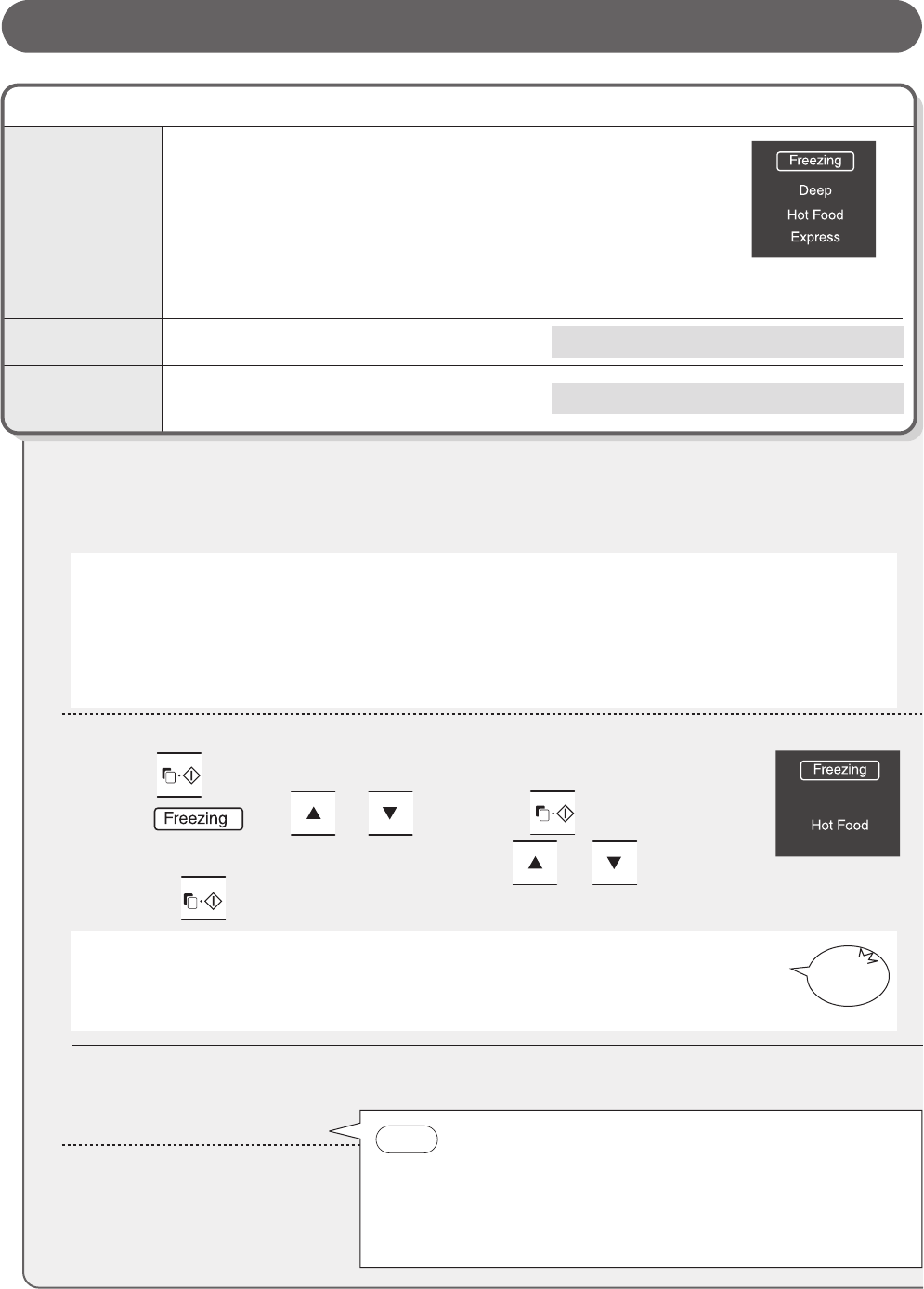 (Deep freezing / Hot food freezing / Express freezing)