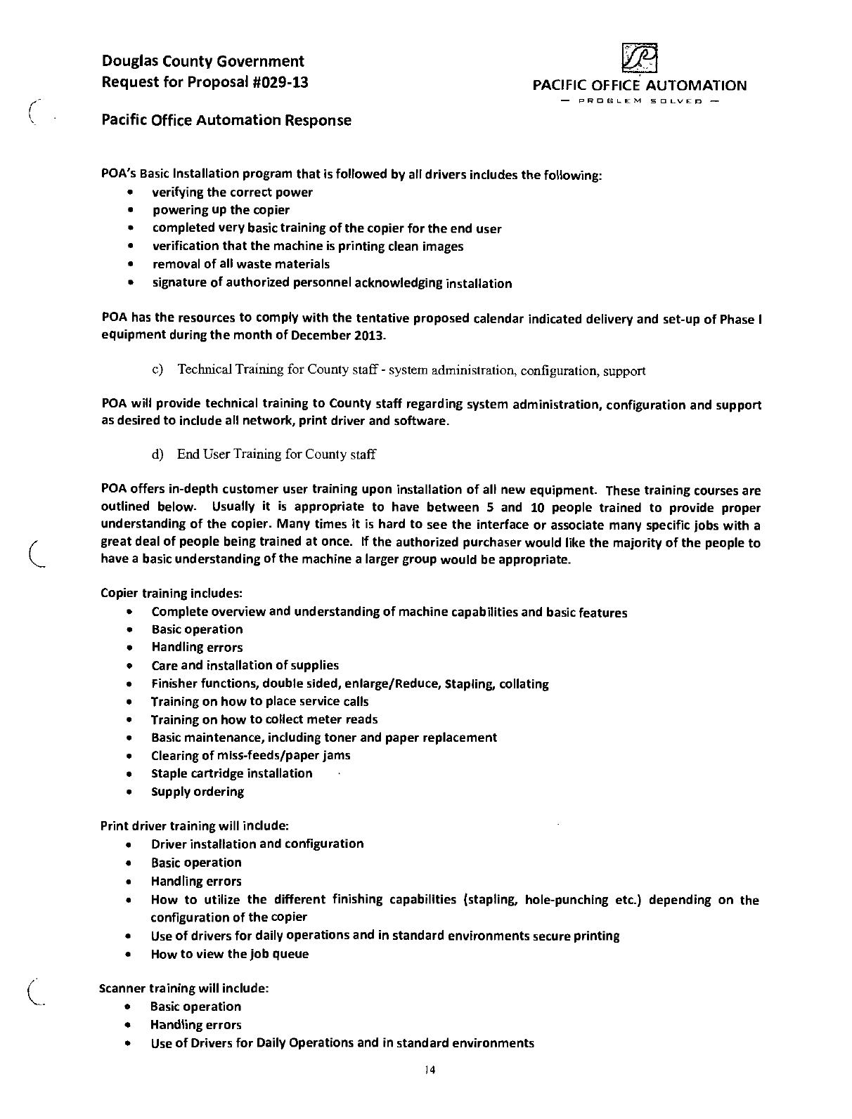 POA will provide technical training to County staff regarding system administration, configuration and support
