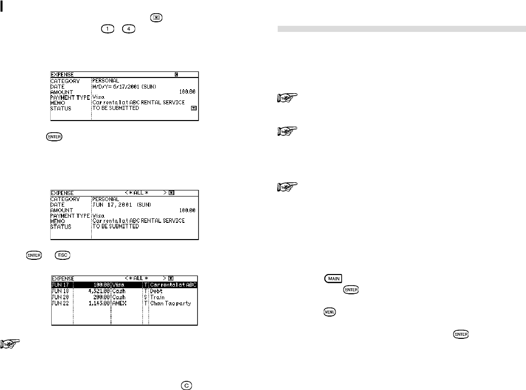 Press to enter the Main Menu and select Expense