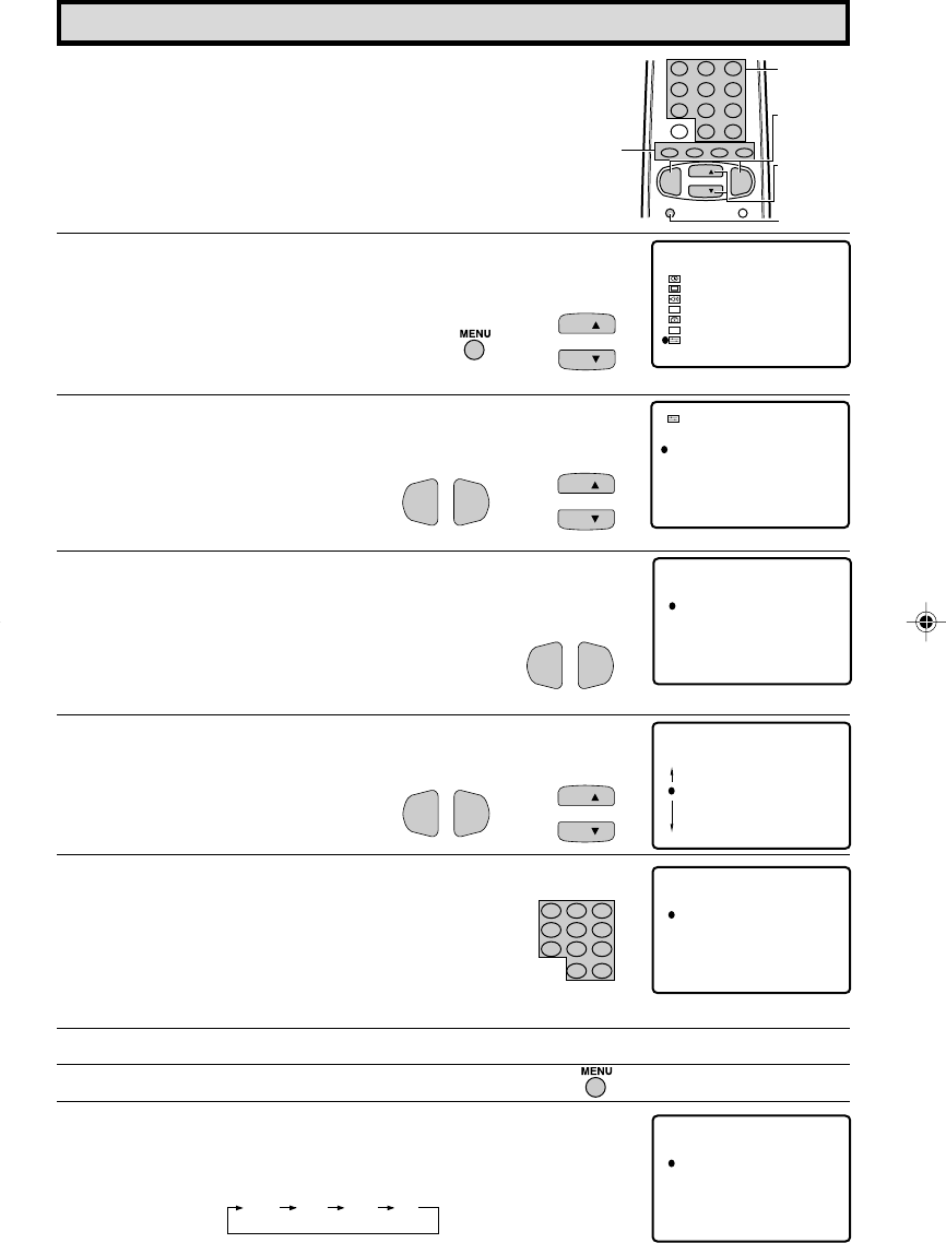 5 Press VOL k/l and CH a/s to move the “E” mark to the desired