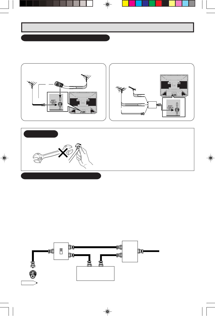 • Consult your SHARP Dealer or Service Center for the type of splitter, RF switch or combiner that