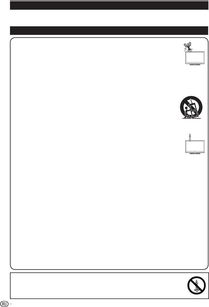 Оберегайте продукт от дождя и влажности, емкости с жидкостью, такие как вазы, не ставьте на аппаратуру. ●