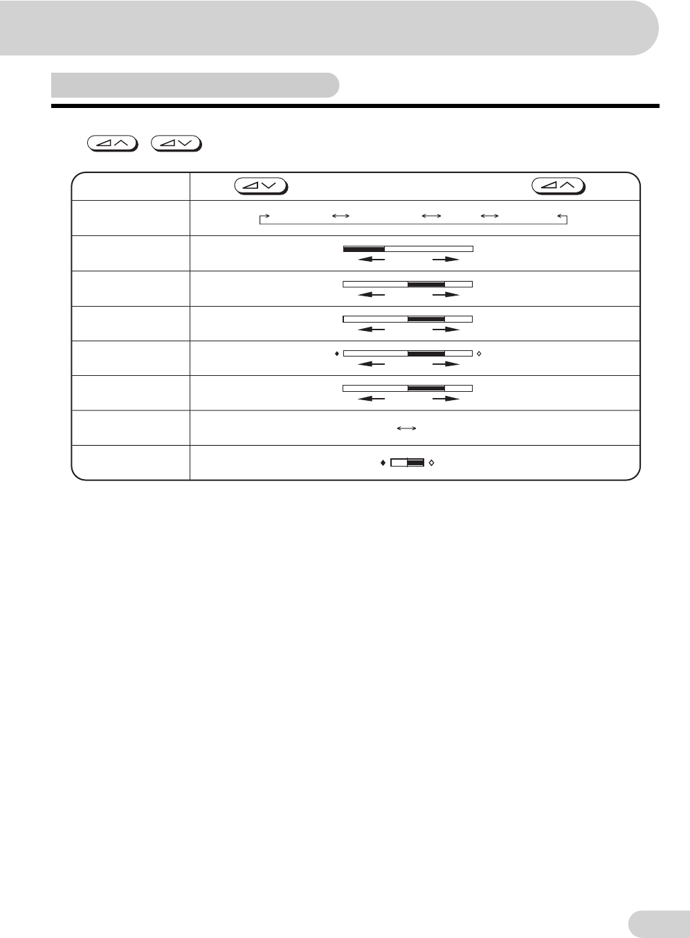 The following table lists the adjustment items shown in the PICTURE menu and how they change as you