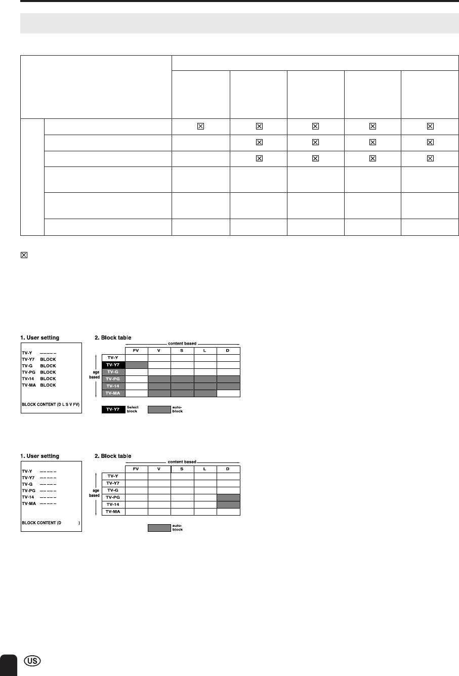and TV-MA. In addition, D, L, S, V and FV in CONTENT are automatically blocked unless you manually set BLOCK